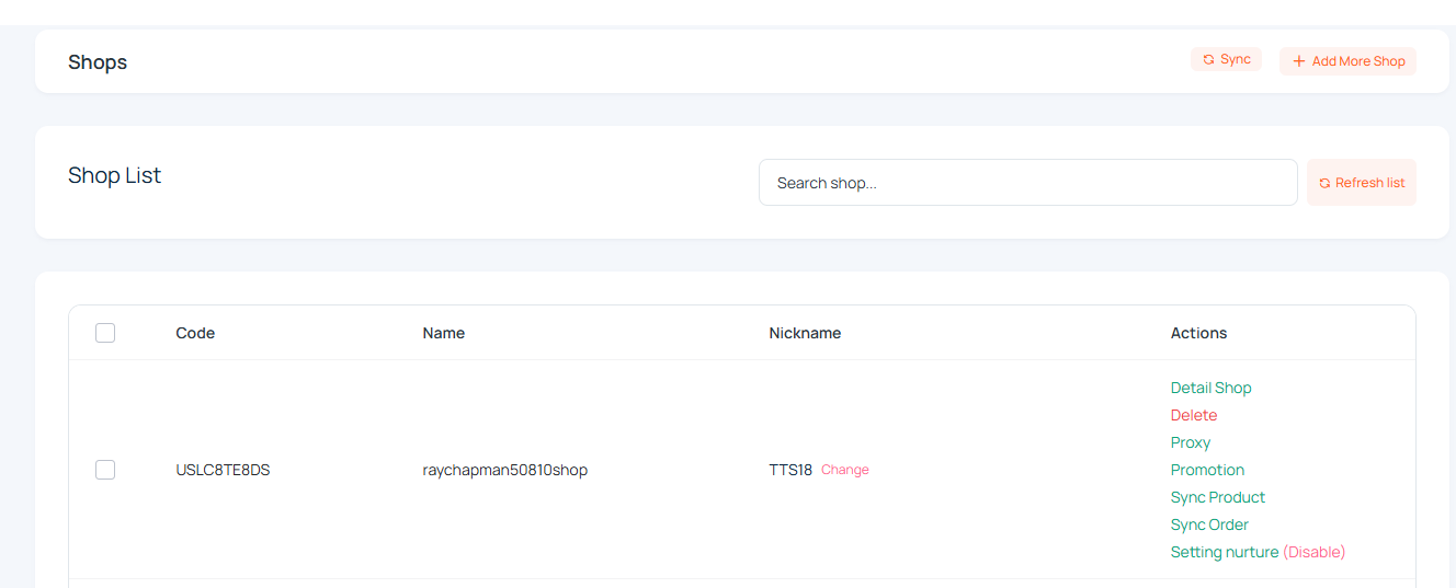 ℹ️ To refresh the shop list and reflect the latest connection status, click the Refresh List button on the Shops page. You may also use the Sync button in the top-right corner to trigger a full data synchronization across all connected TikTok Shop accounts.
